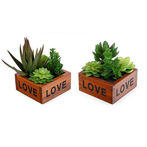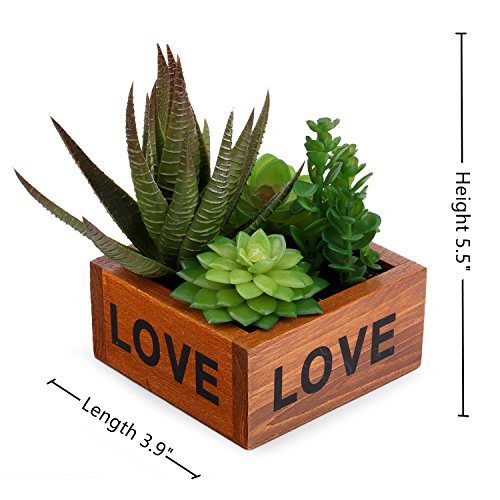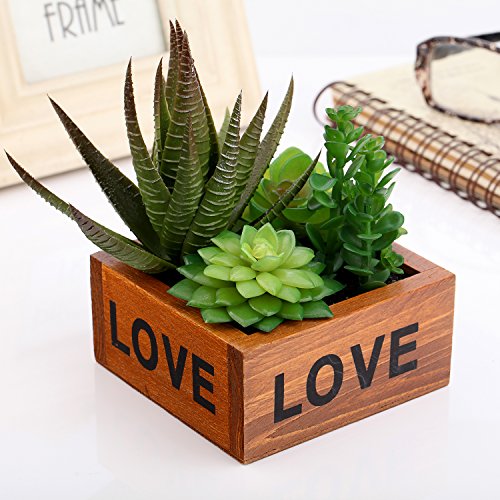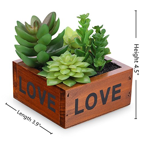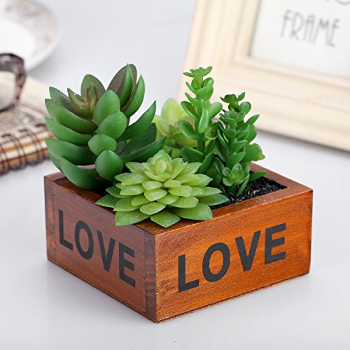 Set : retro wooden pots(bubble inside)+ 4 different types artificial succulents