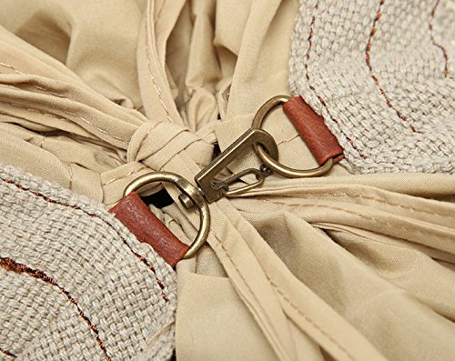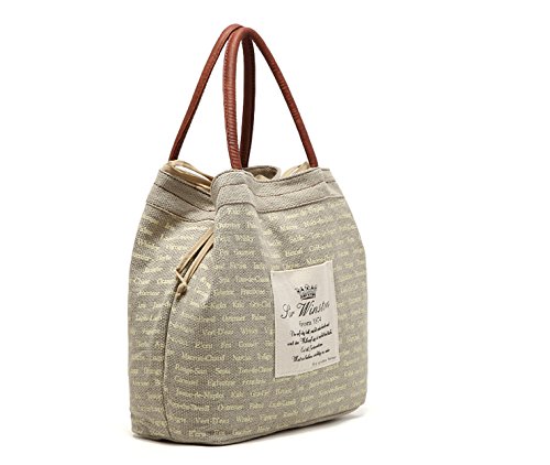 Flowertree Women's Linen Knitted Convertible Eco-friendly Tote Shoulder Bag Beige