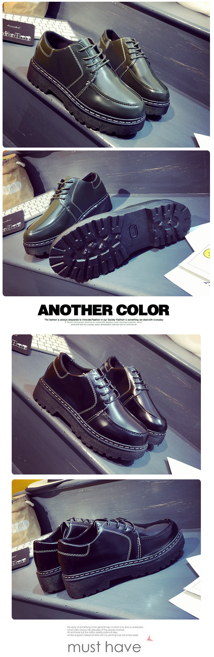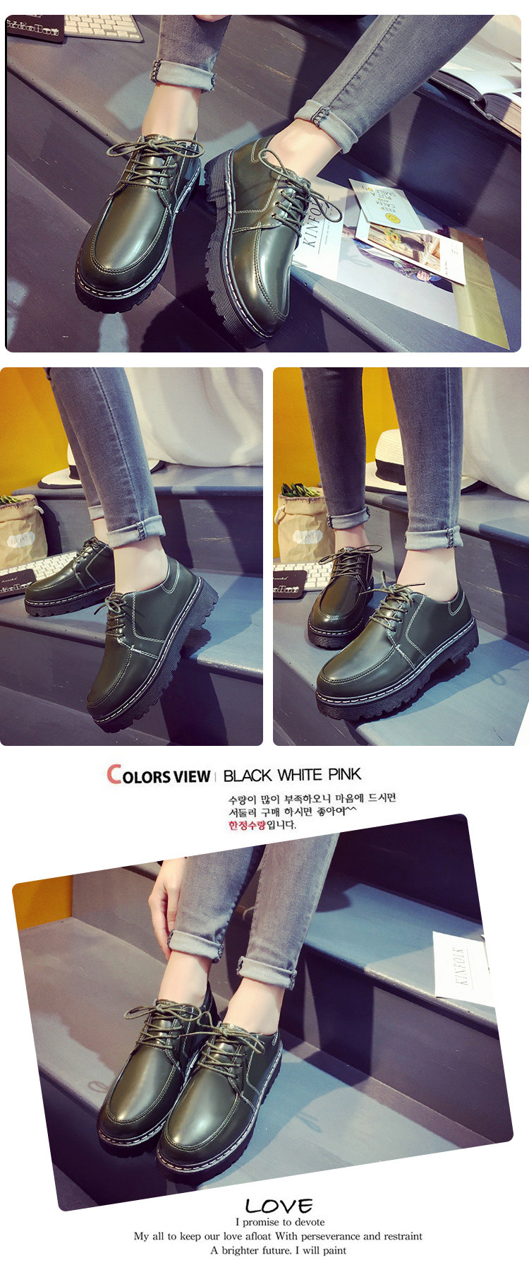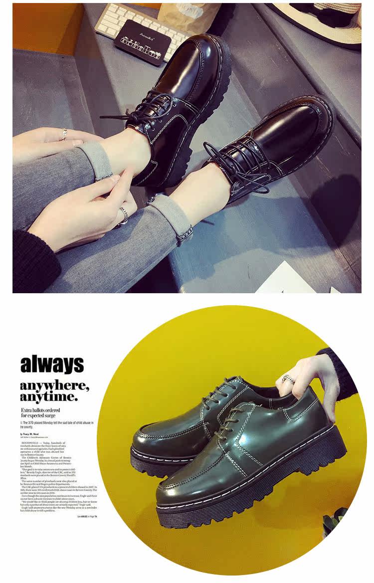 春季韩版新款学院英伦风粗跟单鞋女平底休闲复古小皮鞋松糕鞋