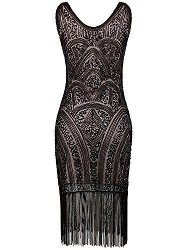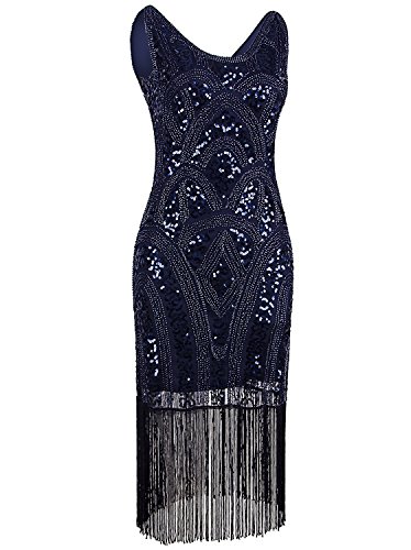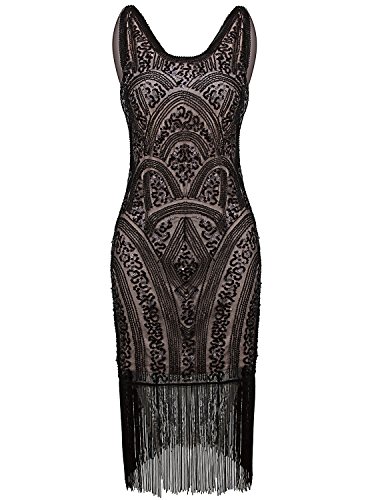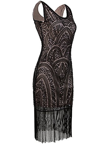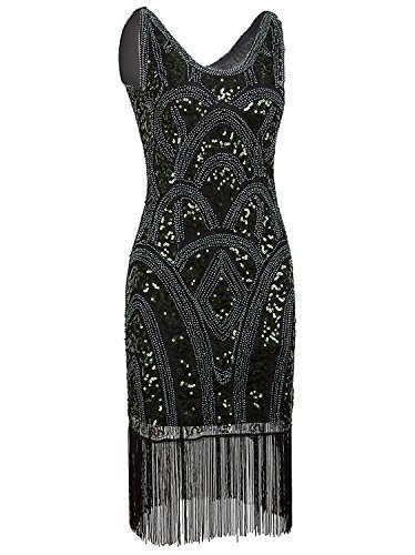 Vijiv 1920s Vintage Inspired Sequin Embellished Fringe Prom Gatsby Flapper Dress