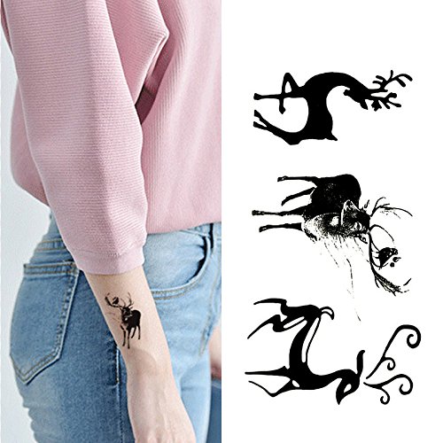 Oottati Small Cute Temporary Tattoo Black Deer Totem (2 Sheets)