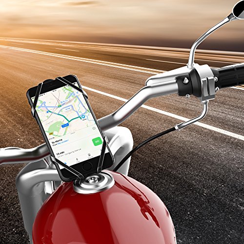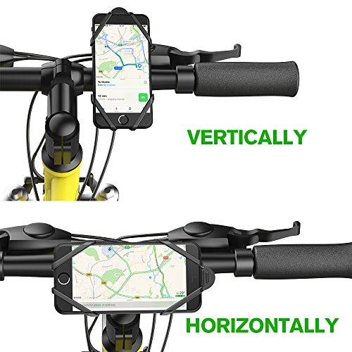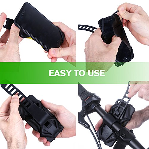 √ PREMIUM CLAMP& SECURE GRIP-- Made of Eco-friendly silicon rubber, and the silicone bands that go around the four corners will secure your phone on bumpy terrain and prevent it from slipping out, so that your smartphone will stay firmly fastened all your journey. Rubber clips of the mount will absorb all the bumps;