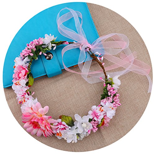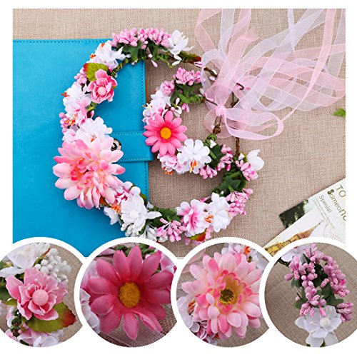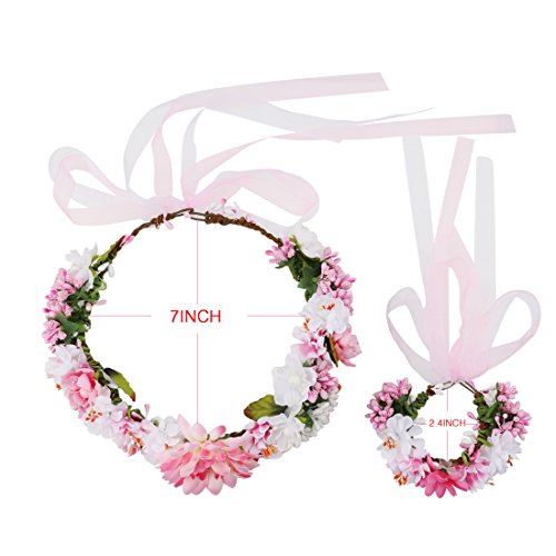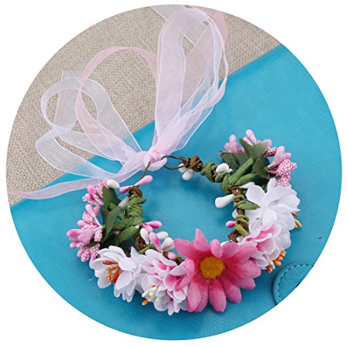A-SZCXTOP Colorful Artificial Bridal Wreath Hairband Crown, Flower Wreath with Floral Wrist Band for Wedding Festivals and Beach Vacation Dress up