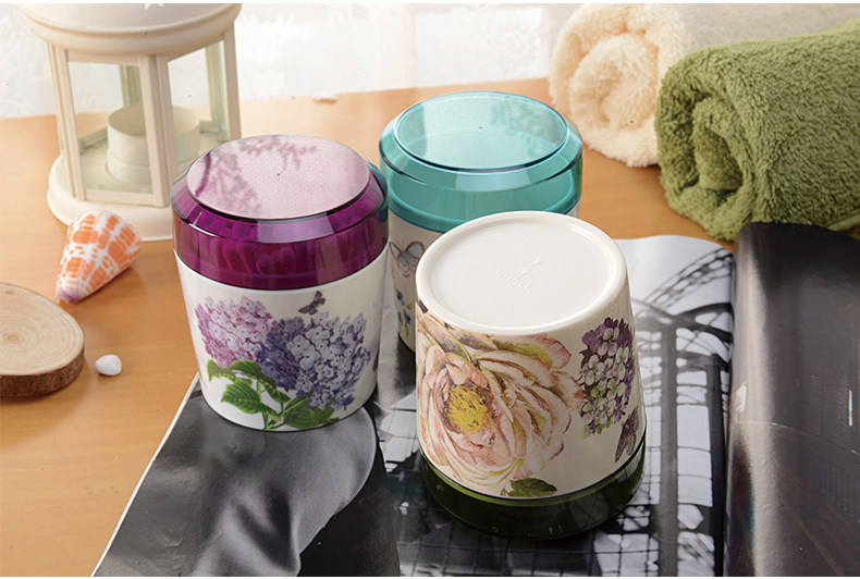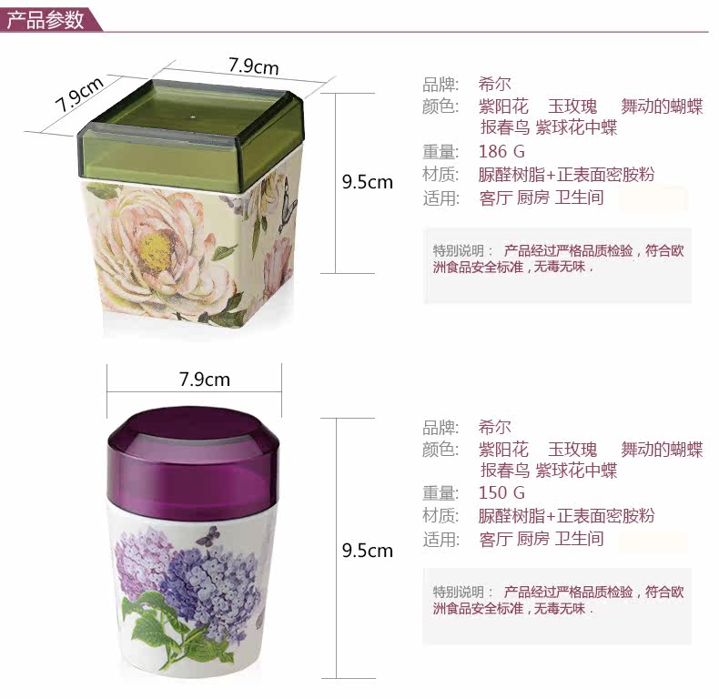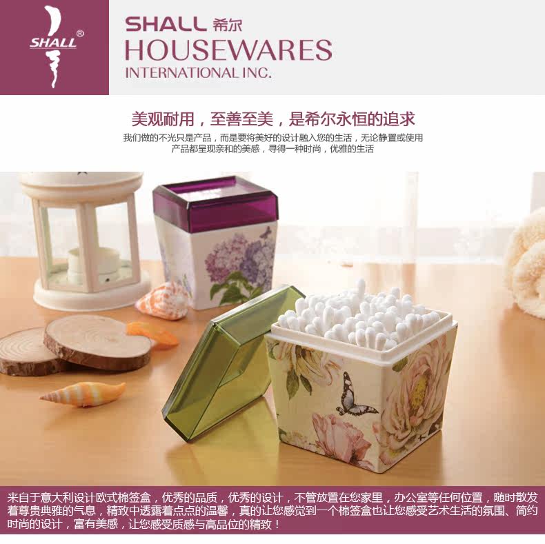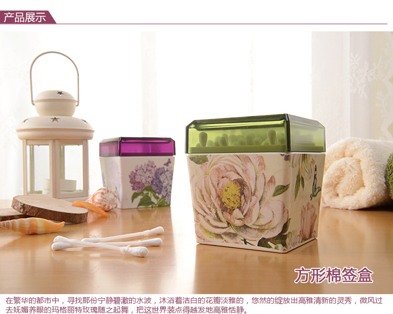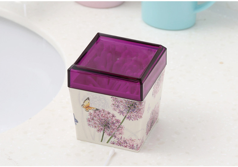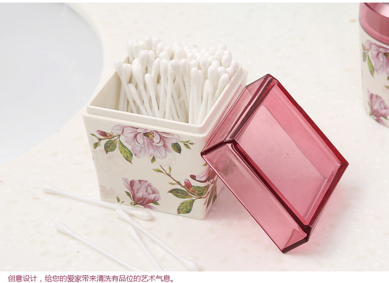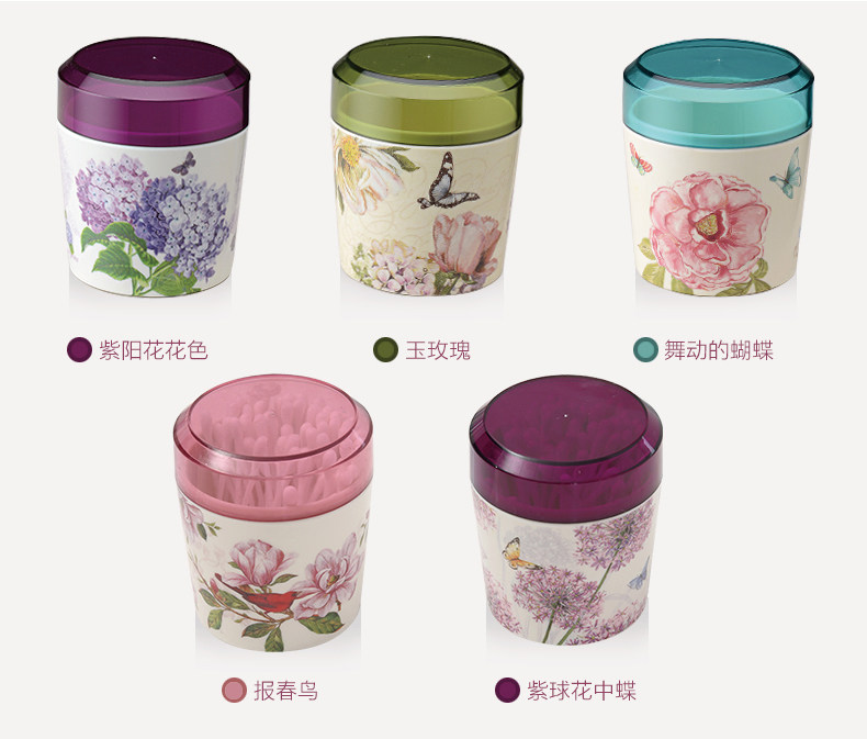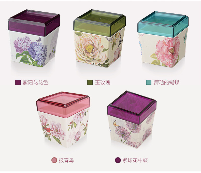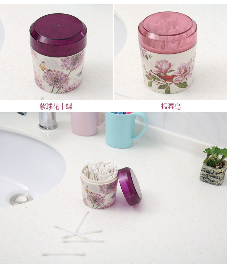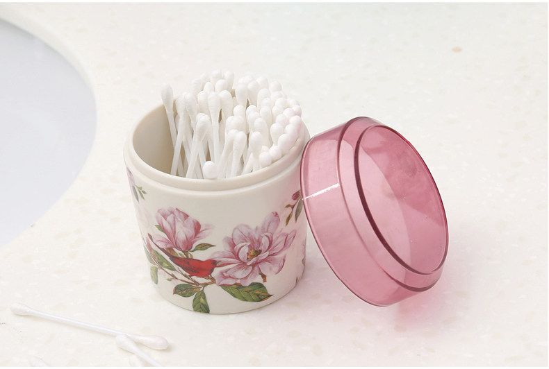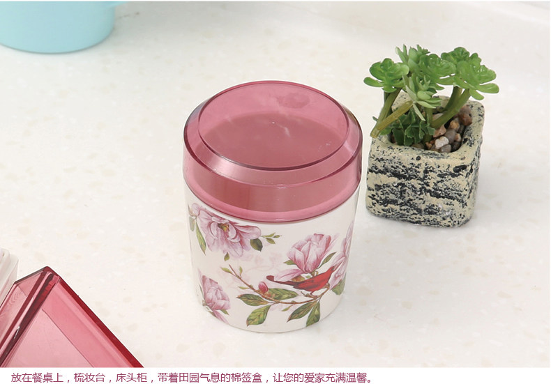 󰄬欧式创意便携美耐皿棉签盒 透明盖时尚仿陶瓷棉签盒子收纳盒