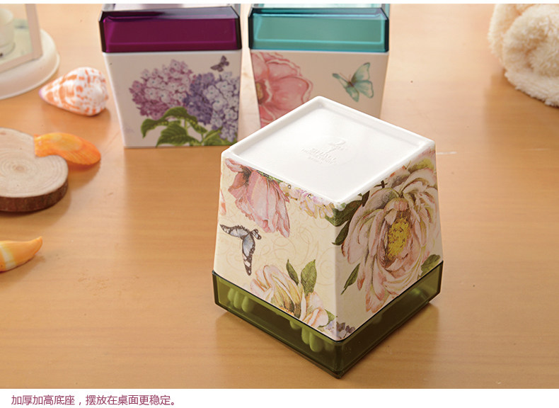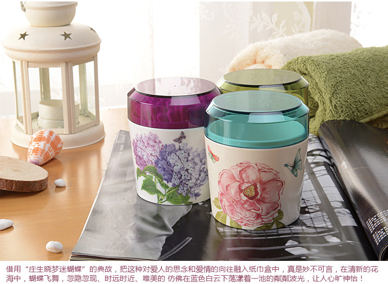 欧式创意便携美耐皿棉签盒 透明盖时尚仿陶瓷棉签盒子收纳盒