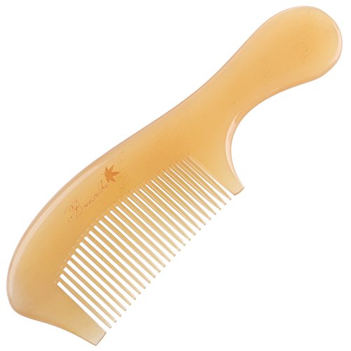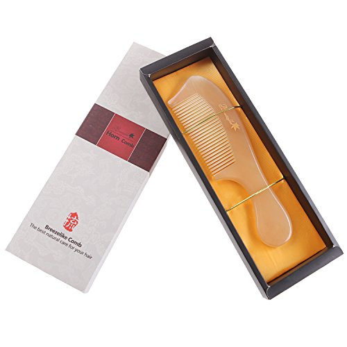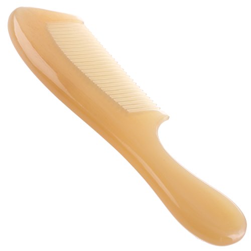 Breezelike No Static Super Thick and Sturdy Big Size Round Handle Sheep Horn Fine Tooth Comb