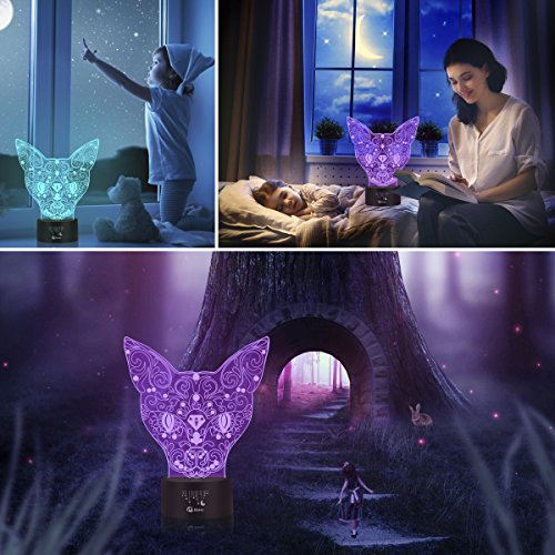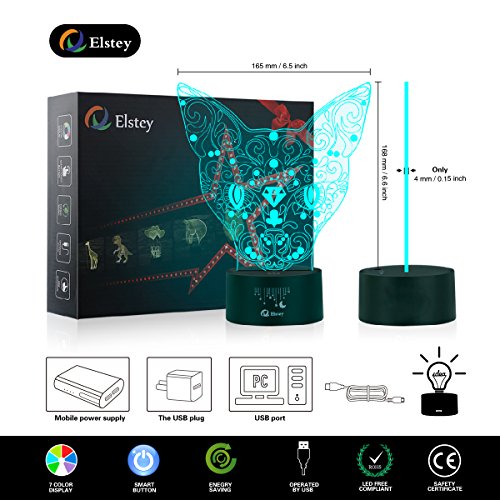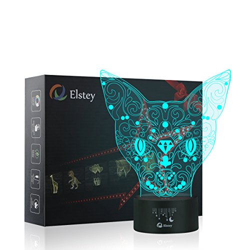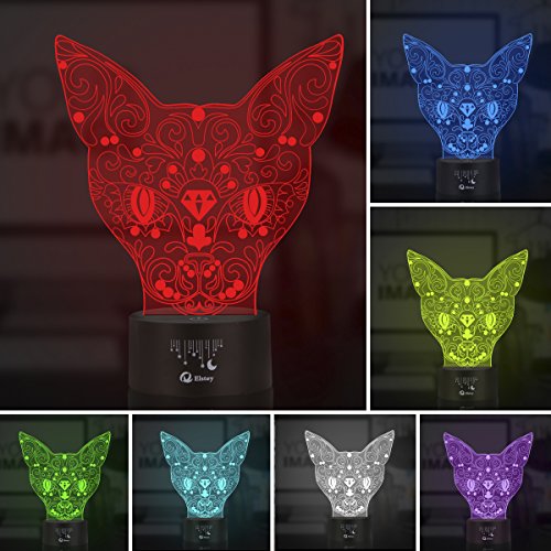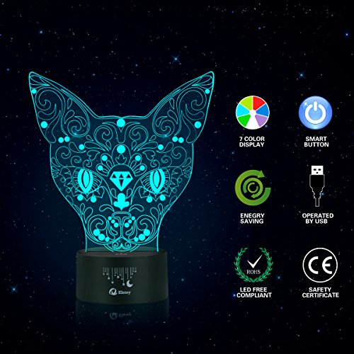 Lovely Cat 3D Illusion Lamp, Elstey 7 Color Changing Touch Table Desk LED Night Light Great Gifts
