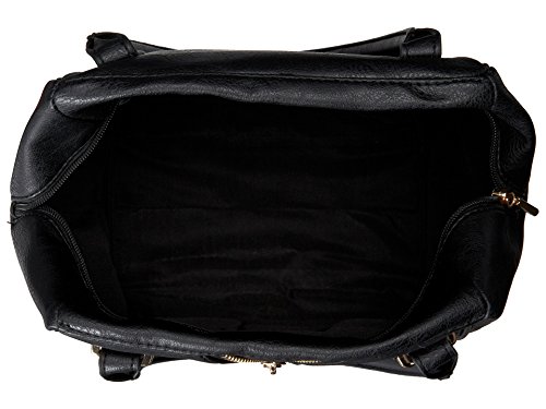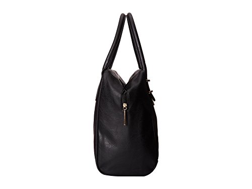 Never fear a stunning silhouette. You were born to be bold and embrace the beauty of fashion! Textured synthetic leather handbag, Top zip closure. Two rolled carry handles with polished hardware. Exterior boasts unique zipper detail at front, stunning square silhouette, tonal stitching, and brand logo plate at bottom front. Flat bottom supports upright structure Fully lined polyester interior. Interior boasts back wall zip pocket and two slip pockets for organization. Approx measurements: Bottom Width: 9 in Depth: 6 in Height: 11 in Strap Length: 18 in Strap Drop: 6 inFeature