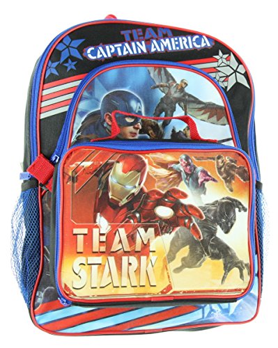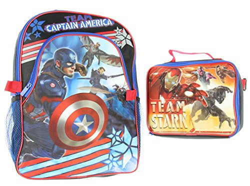 -. Binding : Apparel -. Brand : Marvel -. Color : Multi -. Department : boys -. EAN : 0693186418457 -. Feature : Officially licensed Marvel Captain America kids back pack with lunch bag / Large size backpack dimensions approx 16"H x 12"W and lunch bag dimensions approx 9"H x 7"W x 3"D / Features zipper closures, side pockets, adjustable shoulder straps and straps to attach lunch bag to backpack / Suitable for childrens ages 3 and up -. Label : Royal Connexions -. Manufacturer : Royal Connexions -. MPN : C327993 -. NumberOfItems : 1 -. PackageQuantity : 1 -. PartNumber : C327993 -. ProductGroup : Apparel -. ProductTypeName : BAG -. Publisher : Royal Connexions -. Size : one size -. Studio : Royal Connexions -. Title : Marvel Captain America Civil War Backpack With Lunch Tote -. UPC : 693186418457