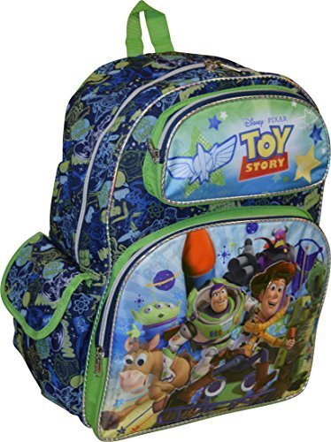 -. Brand : Toy Story -. Color : Blue -. Department : boys -. EAN : 0758576906294 -. Feature : Made of an easy to clean and very durable polyester cordura fabric with stunning embossed 3D logos and comic books printing / Features one large zippered compartment for binder, books and folders / Features two front cargo zippered pockets, one flap over side pocket and one net side pocket / Padded adjustable shoulder straps and padded back for additional comfort. This piece is enhanced with beautiful stamping all around, silver finishing metal zippers and silver trimmings. / Dimensions: 16"H x 12.25"W x 5.5"D -. Model : 5603187 -. MPN : 5603187 -. NumberOfItems : 1 -. PartNumber : 5603187 -. ProductGroup : Apparel -. ProductTypeName : LAGE -. Size : Large -. Title : Disney-Pixar Boy's Toy Story 3D Enhanced Comics 16" School Bag Backpack -. UPC : 758576906294