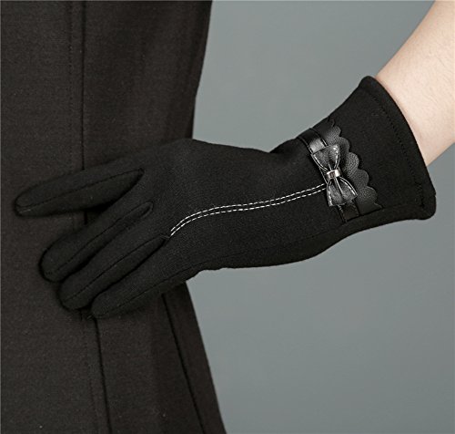 Item Name: Touch Screen Gloves Gender: Women's Material: Cotton Occasions: Office, School, Outdoor, Home, etc Features: Solid Color, Warm, Bowknot Total Length: 22.5cm/8.86", Palm Width: 8.5cm/3.35", Middle Finger Length: 8cm/3.15" (Approx.)