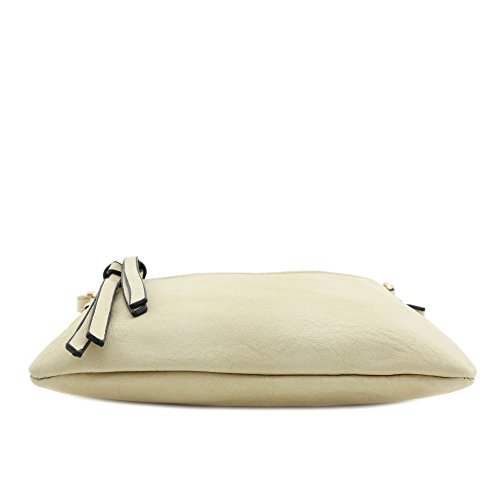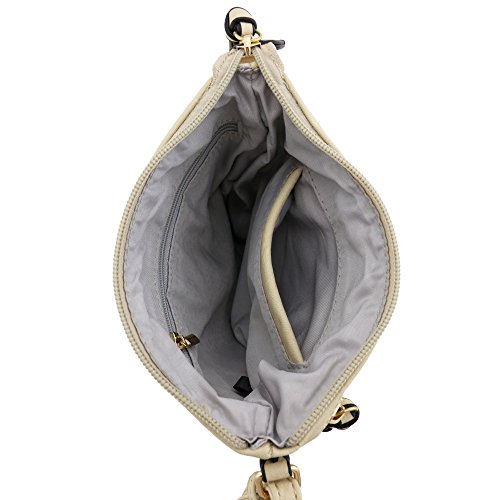 -. Feature : 8" (W) x 8" (H) x 1" (D) / Zipper closure / Adjustable shoulder strap with 25" drop / Faux leather & gold tone hardware / 1 zipper pocket & 1 slip pocket inside