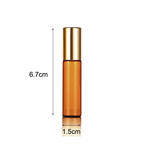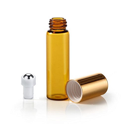 SIMPLE-E 10pcs 5ml Amber Roll on Glass Bottles Essential Oil Steel Metal Roller Ball Gold Alloy Cap Portable For Travel