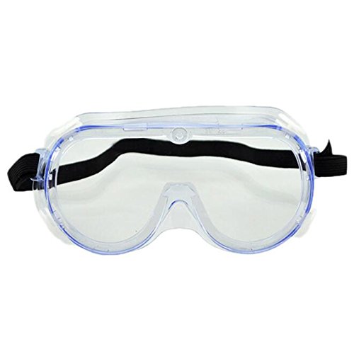 -. Feature : 【ANTI FOG & VENTILATED】Help reduce fogging; Effectively block ultraviolet 99%; Vents located at sides to prevent liquid from getting into goggles. Soft & light, non-tinted lenses guarantees clear vision all the time! / 【MAIN FUNCTION】Designed to protect your eyes from high impact objects or chemical splash. Designed for industrial, commercial, and household duties. Perfect for Lab Work, Chemistry, Woodworking, Mechanics, Construction, and More!【ELASTIC HEADBAND】Fully adjustable comfort strap, ethylene lens frame, fits all head sizes, specifically engineered for a tight, comfortable fit. / 【ELASTIC HEADBAND】Fully adjustable comfort strap, ethylene lens frame, fits all head sizes, specifically engineered for a tight, comfortable fit. / 【FITS OVER EYEGLASSES】Please do not worry about that you can not wear our safety goggles when you are wearing glasses. Our safety goggles fits for your glasses. It can be worn glasses. / 【Genmine GUARANTEE】Put your worries aside! If you don't like it for any reason, you can just take advantage of our 60 days' warranty. We will replace it or give your money back for any reason. Go ahead.