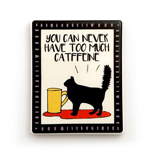Enesco 4057149 Catffeine Cat Stoneware Magnet, 3", Multicolor