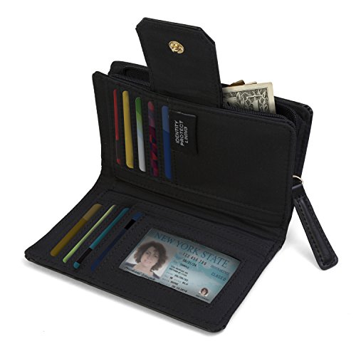 -. Feature : BEAUTIFULLY DESIGNED SMALL WOMENS WALLET - A stylish vegan leather pattern with a snap closure features: 8 credit card pockets, 4 vertical pockets, 1 Picture Photo / ID window, 1 zippered pocket and cash pocket. / WOMENS RFID WALLET BLOCKING TECHNOLOGY - This TAHARI RFID blocking wallet clutch stops theft and electronic pick pocketing, protect your credit cards, debit cards, drivers license, bank cards or any other RFID enabled cards / PERFECT SIZE - Our RFID Blocking small womens wallet Clutch is perfect to travel with or a night on the town, each wallet is 6" x 3.5" x 1" inches, big enough to hold your essentials but small enough to fit inside your purse / WOMENS SMALL COMPACT WALLET - This TAHARI wallet is fashionable cute wallet that will match your work outfit or your date night outfit. / 100% SATISFACTION GUARANTEED - We are confident that you will love your new wallet, if for some reason you are unhappy please let us know and we will replace or refund your wallet