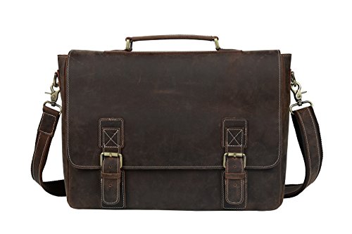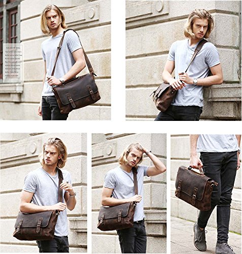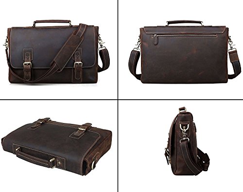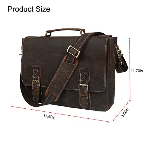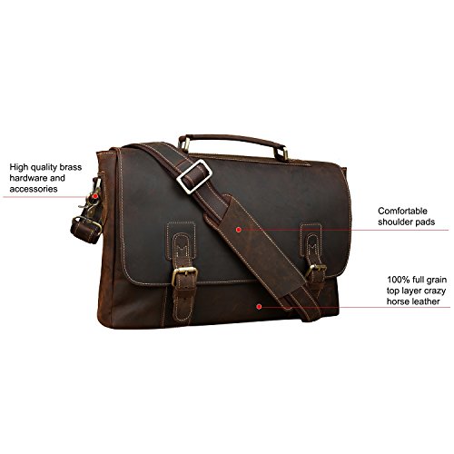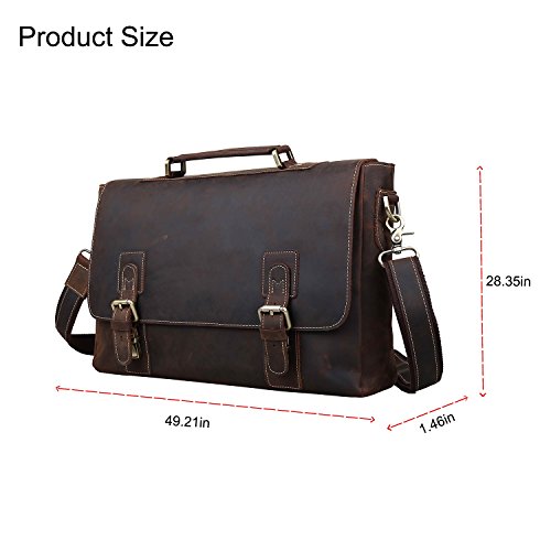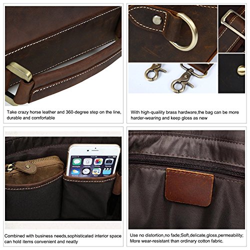 -. Feature : 15.6"lx3.5"wx10.9"h;mens bag for 13-14 inch laptop / Interior with compartment pocket which can store your 14" table pc, back wall zipper pocket, wallet holder, cell phone holder and 3 pen holders / Adjustable and removable shoulder strap with comfortable pad;reinforced rigid top handle, brass hardware, sturdy and durable in use / 100% full grain top layer crazy horse leather,waterproof soft scrub the surface with a soft cotton lining / This vintage style messenger bag is perfect for using in business, college or casual occasions
