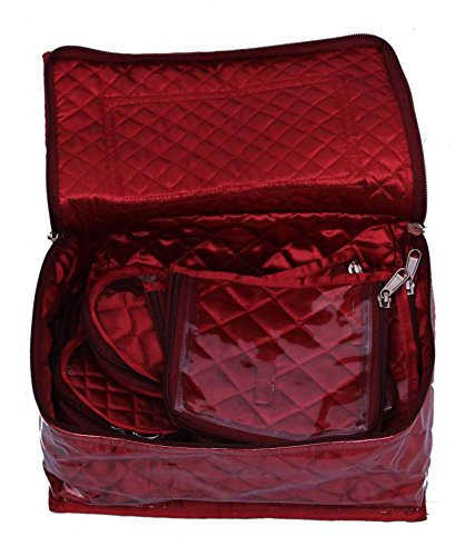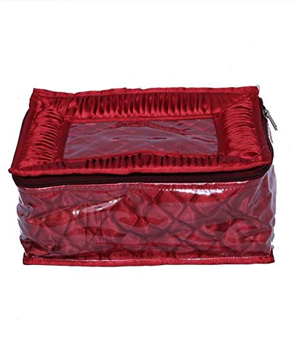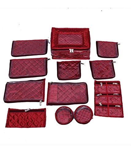 Kuber Industries Jewellery Kit /Locker Jewellery Box With 12 Pouches In Heavy Quilted Satin (Maroon)