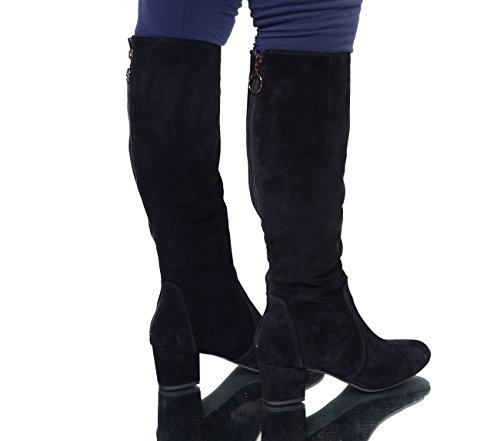 Product DescriptionPull off a haydun and steal the show in these slim knee-high boots.? allover suede and a square heel gives them a ‘60s mod styling0