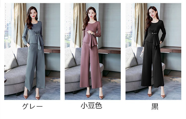 ★素材:ポリエステル ★生地の厚さ:普通 ★セット内容:トップス+パンツ ★生産国:中国 ★カラー:グレー/小豆色/黒 (写真参考)※お客様ご使用のPC環境により商品画像のカラーが多少異なる場合があります。仕入時期により多少デザインなど異なる場合があります。ご了承ください。★サイズ(cm)M:バス88 着丈57 肩幅38 ウエスト76/66 袖丈55 パンツ丈97L:バスト92 着丈58 肩幅39 ウエスト80/70 袖丈56 パンツ丈98 XL:バスト96 着丈59 肩幅40 ウエスト84/74 袖丈57 パンツ丈99 2XL:バスト100 着丈60 肩幅41 ウエスト88/78 袖丈58 パンツ丈100 ※サイズは人の手によって測っているため、1-3cmの誤差がある場合がございます。予めご了承下さいませ。