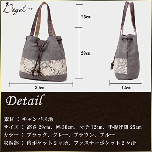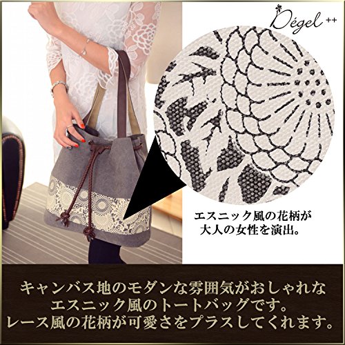 -. Title : Degel++ トートバッグ レディース キャンバス モダン エスニック 花柄 手提げ 肩掛け 軽量 丈夫 A4 収納可能 おしゃれ