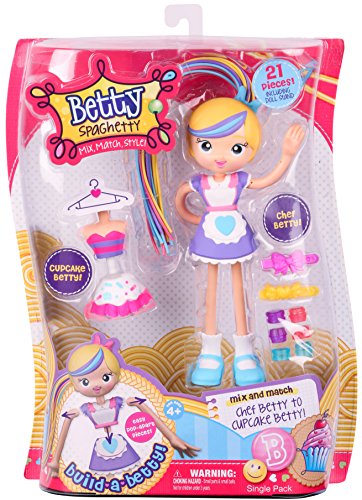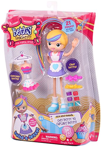 Help Betty Spaghetty bake some cupcake treats! Then dress her up to party in the sweetest cupcake outfit around! Also comes with two hair clips and six beads