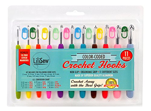 - Feature : ★ OPTIMALLY COMFORTABLE ★ Carefully Designed with Customer's Hands, Wrist and Fingers Comfort to Be Our First Priority; Tested and Approved by Seasoned Crocheters, LiliSew Crochet Hooks Have Been Ergonomically Modeled for Optimal Comfort; Light, Non-Slip, Soft, Cushioned Rubber Grips Allows You to Crochet for Very Long Periods of Time without Any Sign of Discomfort, Stiffness or Numbness; Ideal for Arthritis & Carpal Tunnel Syndrome Subjects. / ★ PERFECT GIFT ★ Christmas Is Approaching! What a Perfect Gift for Mom, Grandmas, Friends, Little Girls, Any of Your Dear Loved Ones. This Could Also Be the Ideal Gift for Both Beginners as Well as Seasoned Crocheters. For under $15.00 You Could Score The Perfect Gift that Your Loved Ones Will Remember You for Forever, Every Time They Are Crocheting or Knitting They Will Be Thinking of You! / ★ YOUR SET CONTAINS ★ NOT 9 as Most Crochet Hook Sets BUT 11 Comfortable Soft Touch Hooks with Vibrant Colors which Makes It Easier to Differentiate between the Different Needle Sizes which Are Displayed in mm. 2, 2.5, 3, 3.5, 4, 4.5, 5, 5.5, 6,7,8. A US Conversion Chart Is Printed on the Package for Your Convenience, US B, C, D, E, F, G, H, I, J,K,L. As a BONUS We Have Included 10 Fun Colored Stitch Markers to Make Your Crocheting Experience Even More Fun. / ★ DON'T DARE TO COMPARE ★ LiLiSew 11 Crochet Hooks Have Been Tested against Susan Bates, Boye, Clover Amour, Ostart, Bamboo, Tunisian, Afghan, Steel, Tulip Crochet Hooks. Ours Will Win Every Time, Hands Down in Terms of Premium Quality, Price, Comfiness and Again, We Do Offer LIFETIME WARRANTY. / ★ LIFETIME WARRANTY ★ 100% Satisfaction Guaranteed Offered on All LiliSew Products. Customers Will Be Fully Satisfied with the Value, Ease of Use, Comfort and Handiness for Every Occasion. This Is the Perfect Christmas Gift for Your Loved Ones. What Are You Waiting for? Click the "Add To Cart" Button and BUY NOW!