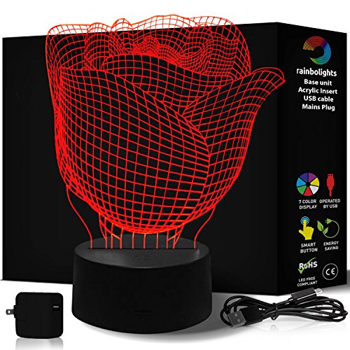 ROMANTIC GIFT IDEA 3D Illusion ROSE FLOWER send flowers in a different way this year! A GREAT MOOD LIGHT a THOUGHTFUL GIFT IDEA includes MAINS...