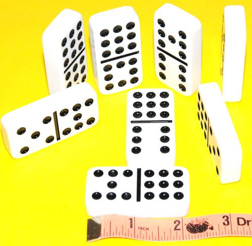 - Feature : Super smooth, Bright, White Dominoes with traditional recessed black Dots / Double Nine Dominoe Set. (Double Nine Sets always have 55 dominoes). / Play many dominoes game variations, but specially designed for those that enjoy the Chicken Foot Game Variation. / Tournament Size Dominoes. Bigger than Standard and Professional size. / Thin, clear, centerpiece starter hub.