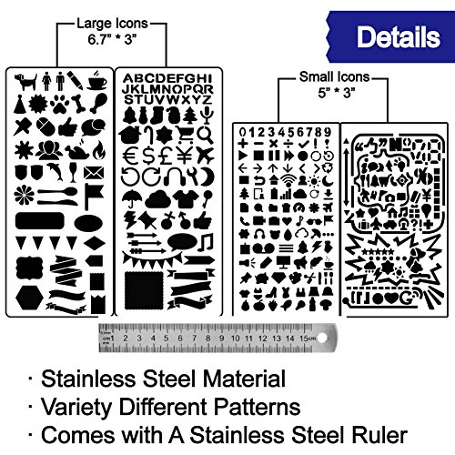 VARIOUS PATTERNS – Come with 2 larger and 2 small different stencils, giving many options for creativity, perfect to decorate and label journals and planners