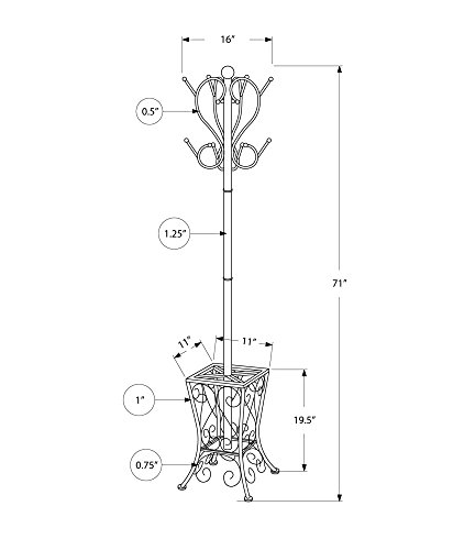 [Description] Multiple hanging hooks ideal for hats_ jackets and scarves Convenient umbrella holder Scrolled classic detailing Decorative accent for any entryway or hallway Materials: Metal