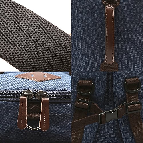 -. Feature : Multi-function Backpack,Main material:High density cotton canvas ,it's a very durable backpack. / Construction : one main zip pocket, one front zip pocket, two side pockets, one removable shoulder strap / Dimensions : about 11" L x 18.9" H x 10.2 W " / 28 x 47 x 26 cm ; With a capacity of about 35 L , suitable for most 15-inch laptops. / Multi- purpose : it can be used as backpack/ shoulder bag/ handbag / travel bag. The straps can be hidden , removable shoulder strap, easy conversion. A bag provides three different ways at least to carry it. / Any question of our backpack, just feel free to contact with us through Amazon. So that the problems can be solved with quickly.