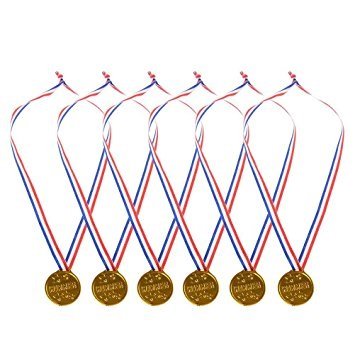 GOLD WINNER AWARD MEDALS RIBBON NECKLACES BULK PACK OF 24 OLYMPIC MEDALS BY NELIBLU