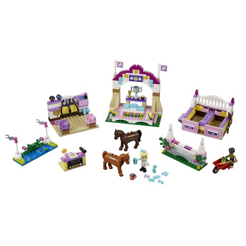-. Binding : Toy -. Brand : Friends -. EAN : 0673419207881 -. Feature : Includes 355 piece set filled with excitementTwo beautiful horse includedCelebrate a victory on the winner's podiumAdditionally 2 mini figures, two jumps, grooming station and more -. IsAdultProduct : 0 -. Label : -. LegalDisclaimer : Super Fly Toys is unable to sell to any Virginia residence because of a non-compete agreement until 04/2017. Sorry! :( -. Manufacturer : -. MPN : 41057 -. PackageQuantity : 1 -. PartNumber : 41057 -. ProductGroup : Toy -. ProductTypeName : TOYS_AND_GAMES -. Publisher : -. Studio : -. Title : Friends Set #41057 Heartlake Horse Show by -. UPC : 673419207881