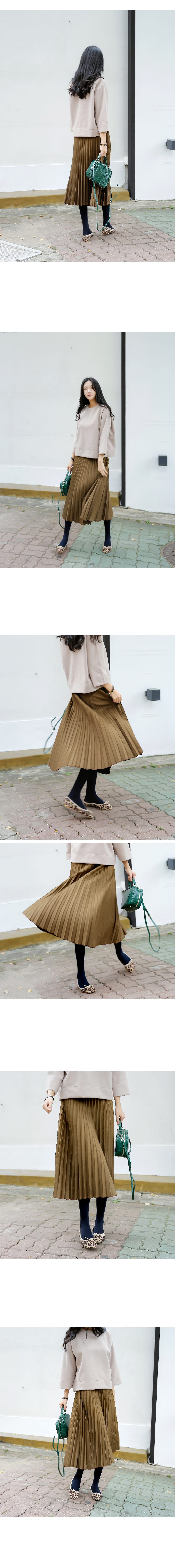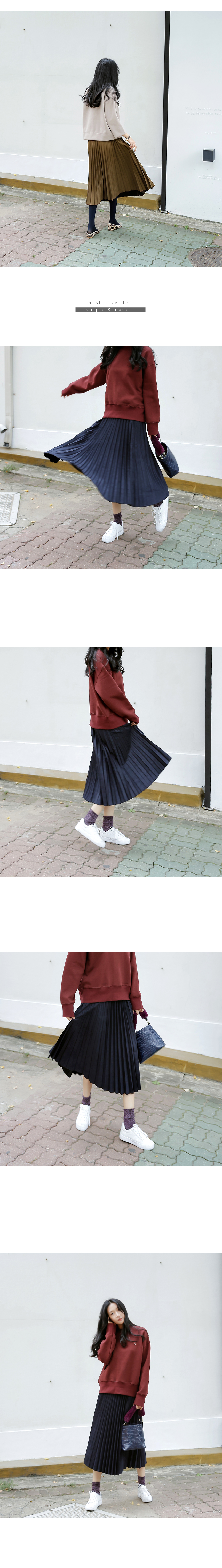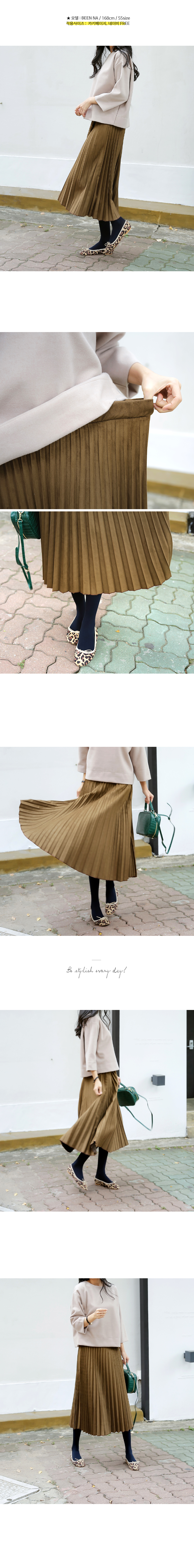 스웨이드처럼 소프트한 질감의 플리츠스커트 고급스럽고 따듯한 텍스처의 미디 길이 플리츠스커트랍니다^^ 스웨이드처럼 보이는 피치 워싱된 질감이 따듯한 니트 등과 잘 어울리는 소재로 카키베이지, 네이비 컬러가 멋스러워요~ 전체 허리 밴딩으로 마감이 단정해 이너를 넣어 입어도 깔끔하고 편안하답니다^^ 색상은 카키베이지, 네이비 사이즈는 FREE 55~66반까지 가능하답니다. ▼ 함께코디된상품 : 아크 스마일 기모맨투맨캐시 겉기모블라우스