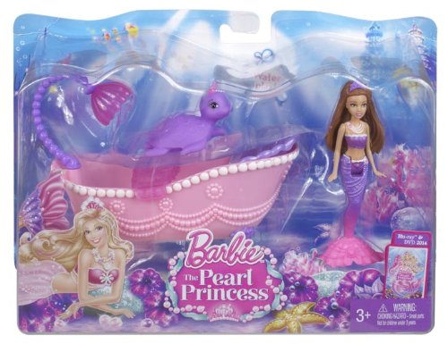 -. Binding : Toy -. Brand : Barbie -. EAN : 0698887277389 -. Feature : In new DVD Barbie The Pearl P.R.Incess, Barbie stars as a beautiful mermaid P.R.Incess with a magical power over pearls / Get her ready for her magical adventures with this splash-making set! / The bathroom pack features a sweet mini-doll, a fantastic friend and fabulous footed tub with sea-sational details / Includes 1 brunette mermaid with turtle companion and pretty pink bath / Dolls can soak in the tub or rest on the side. A fancy curved showerhead adds a splash of style -. IsAdultProduct : 0 -. Label : Mattel - Import (Wire Transfer) -. LegalDisclaimer : New in Package. -. Manufacturer : Mattel - Import (Wire Transfer) -. Model : BDB57 -. MPN : BDB57 -. PackageQuantity : 1 -. PartNumber : BDB57 -. ProductGroup : Toy -. ProductTypeName : TOYS_AND_GAMES -. Publisher : Mattel - Import (Wire Transfer) -. ReleaseDate : 2013-11-01 -. Studio : Mattel - Import (Wire Transfer) -. Title : Barbie The Pearl P.R.Incess Small Doll and Furniture Set, Pink -. UPC : 782361198113 -. Warranty : No Warranty