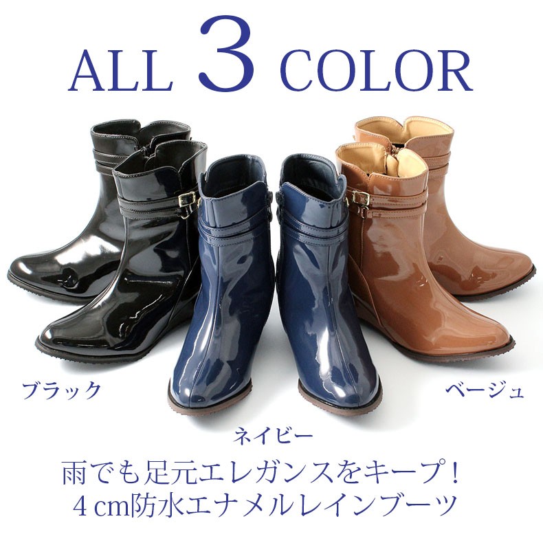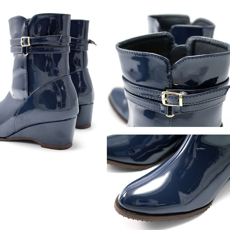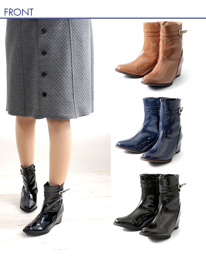 ◆Dilly Dally 4cm防水 エナメル ウェッジ レインブーツ◆