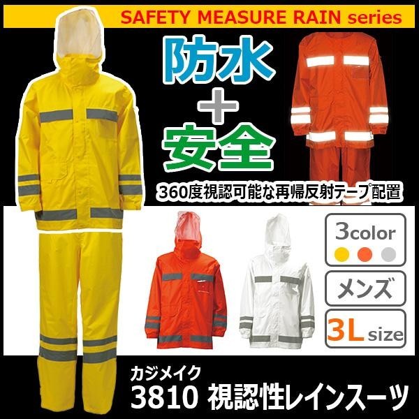 | 夜間や悪天候時の作業などに。胸・背中・腕・肘・裾に再帰反射テープを装備した、視認性の良いレインスーツです。収納もコンパクト!! |
