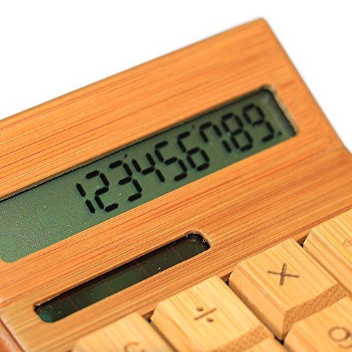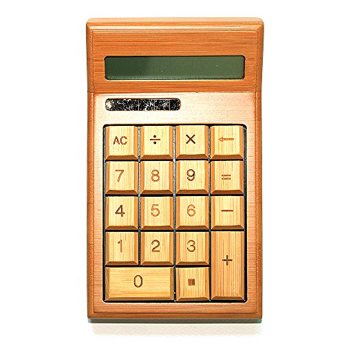 -. Feature : Using natural bamboo, the products are not only comfortable to use and environmental health / Calculator frame using high temperature and pressure carbonization process specially crafted, never cracking, never deformation, strong anti-drop capabilities, durable / Button tap flexible font is portrayed with a laser engraving process out. More wear-resistant, prolonged use will not lead to illegible phenomenon / High-quality LCD screen, clear screen, no trace / Automatic solar charging, no battery