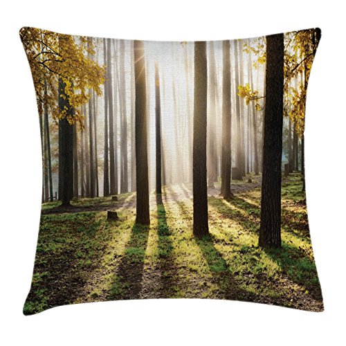 (Ambesonne)/Bedding Bath/Bedding/DIRECT FROM USA/Forest Throw Pillow Cushion Cover by Ambesonne, Landscape Sunrise in the Forest Leaves in Golde...