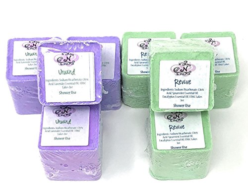 Shower Bomb Aromatherapy Square Packed With Scent And Strong Smell 3 oz Each Pack of 8 (Revive 4 pc Unwind 4 pc)
