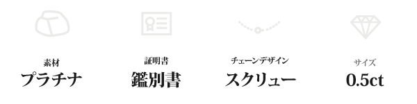 【商品名】 純プラチナ 0.5ctダイヤモンドペンダント/ネックレス スクリューチェーン(鑑別書付き) 【ジャンル・特徴】 ダイヤネックレス Pt999 0.5カラット 一粒ダイヤモンドネックレス ■サイズ・色違い・関連商品■純プラチナ 0.1ct スクリューチェーン(鑑別書付き)■純プラチナ 0.1ct ベネチアンチェーン(鑑別書付き)■純プラチナ 0.1ct スクリューチェーン(鑑定書付き)■純プラチナ 0.1ct ベネチアンチェーン(鑑定書付き)■純プラチナ 0.3ct スクリューチェーン(鑑別書付き)■純プラチナ 0.3ct ベネチアンチェーン(鑑別書付き)■純プラチナ 0.3ct スクリューチェーン(鑑定書付き)■純プラチナ 0.3ct ベネチアンチェーン(鑑定書付き)■純プラチナ 0.5ct スクリューチェーン(鑑別書付き)[当ページ]■純プラチナ 0.5ct ベネチアンチェーン(鑑別書付き)■純プラチナ 0.5ct スクリューチェーン(鑑定書付き)■純プラチナ 0.5ct ベネチアンチェーン(鑑定書付き)■純プラチナ 0.7ct スクリューチェーン(鑑別書付き)■純プラ