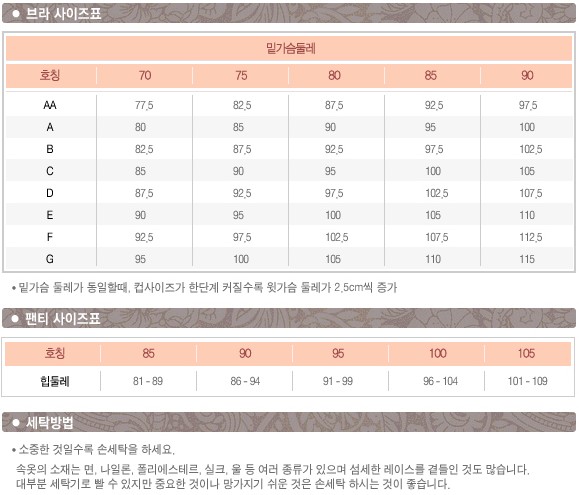 95사이즈까지의 다양한 사이즈의