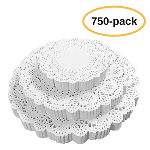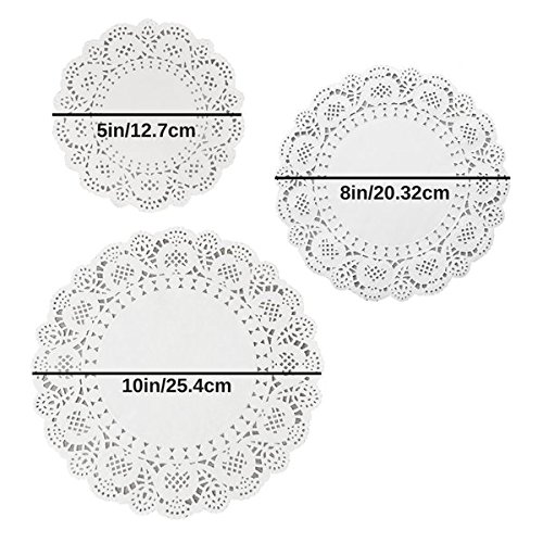 INCLUDES 750 PAPER DOILIES ASSORTED SIZES (3): 250-pack 5 inch, 250-pack 8 inch, 250-pack 10 inch
