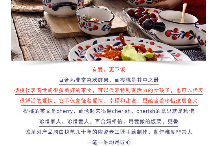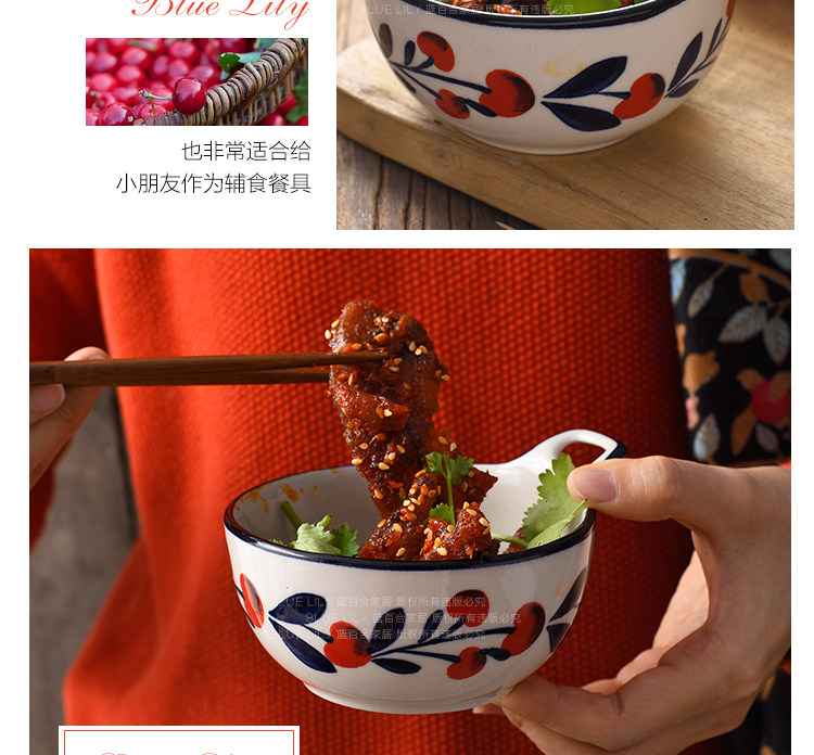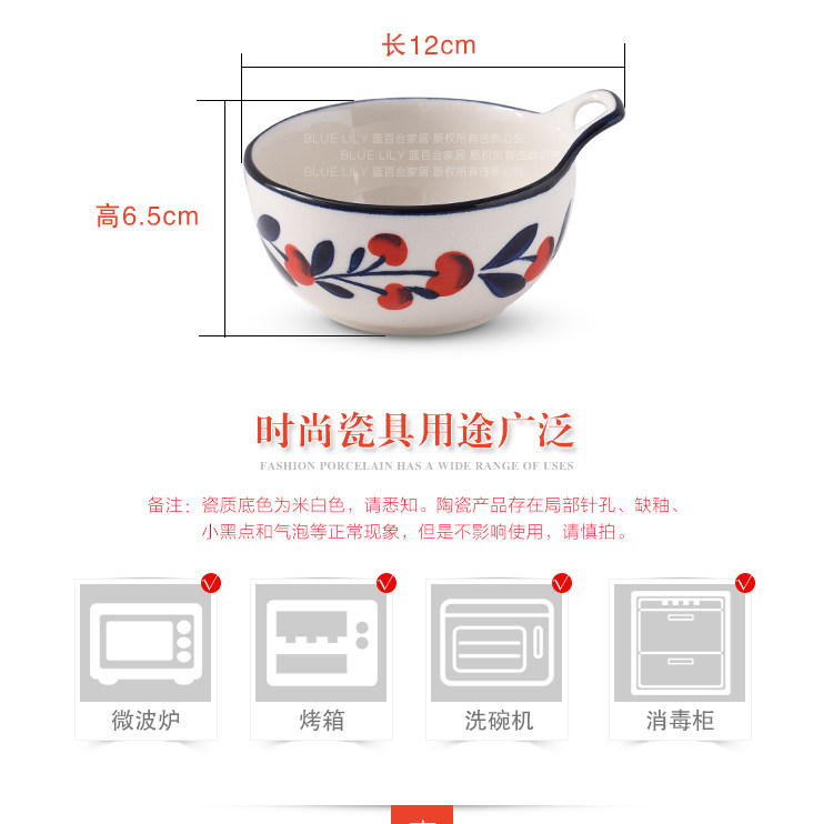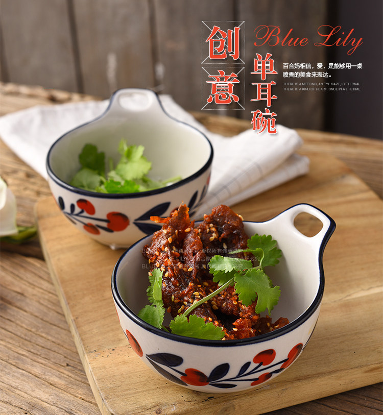 浆果小樱桃单耳碗可爱清新餐具创意儿童小碗汤碗水果沙拉碗布丁碗