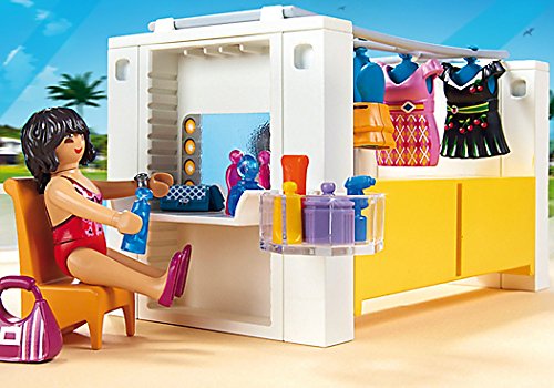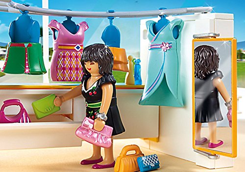 Pick out the most glamorous outfit in the Modern Dressing Room. Kids will love checking themselves out in the movable mirror as they try on different outfits. After you have chosen the perfect outfit, hang the dresses back up on the dress rack and put the skirts away in the drawers. Use the vanity area to apply makeup or style the figure's hair. Set includes one figure, vanity, mirror, chair, three dresses, three skirts, hanger, purses, and other accessories. Outfits can be interchanged with other dresses and skirts from the Modern Luxury Mansion and Furnished Shopping Mall themes. Recommended for ages four to ten.