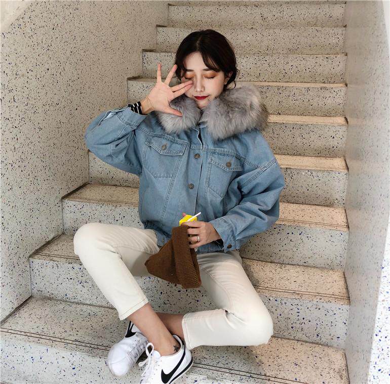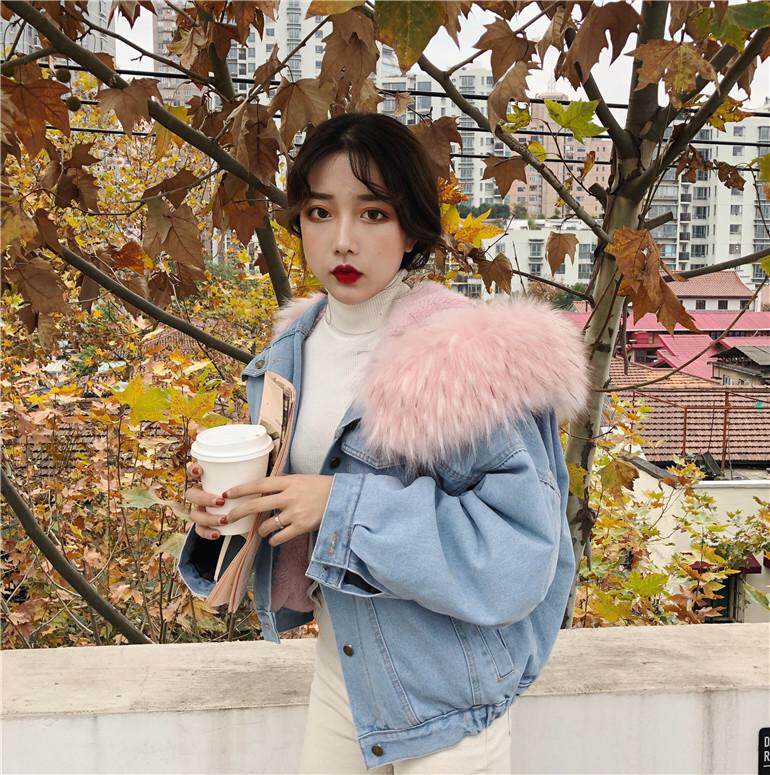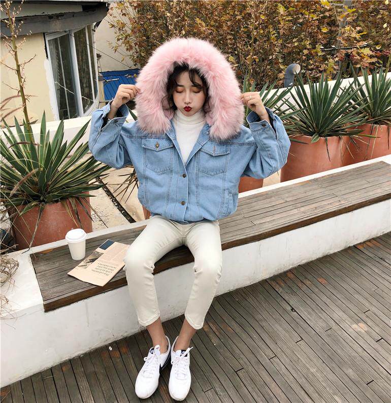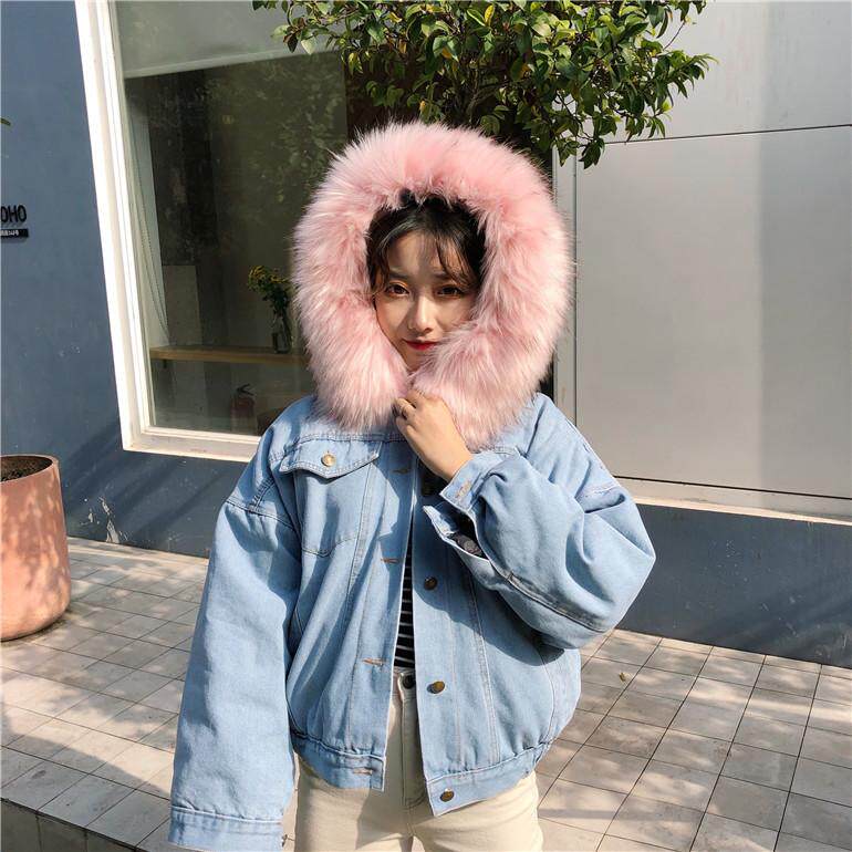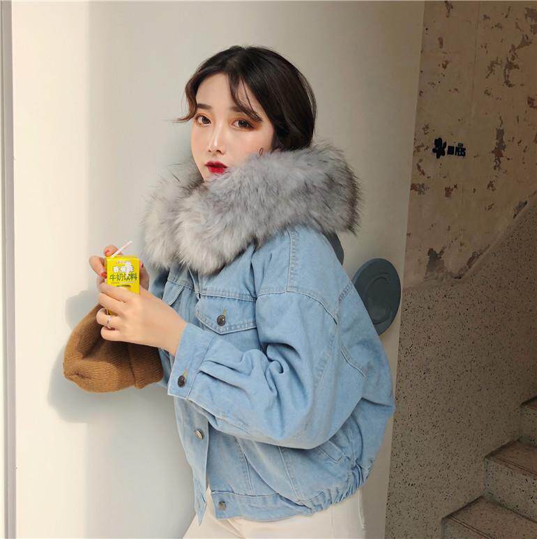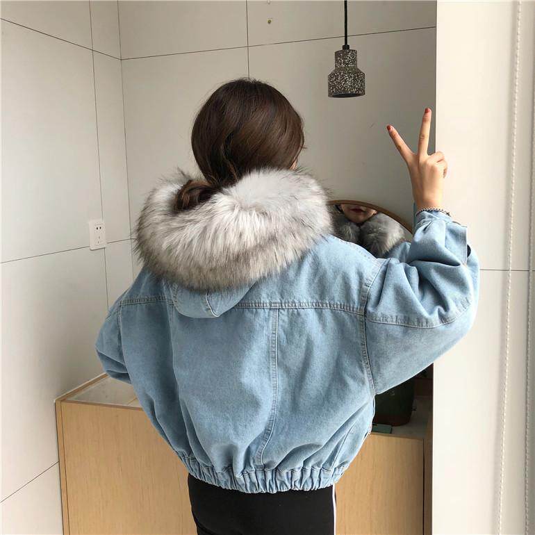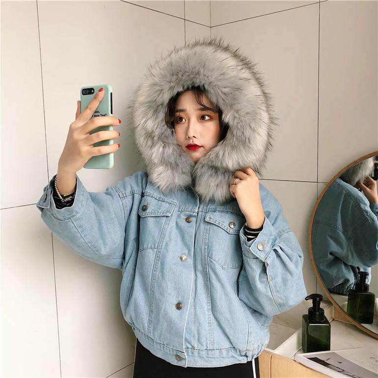 ツーリング 女 短いスタイル 手厚い 大 毛皮の襟 小さな綿 韓国風 アウターウェア 帽