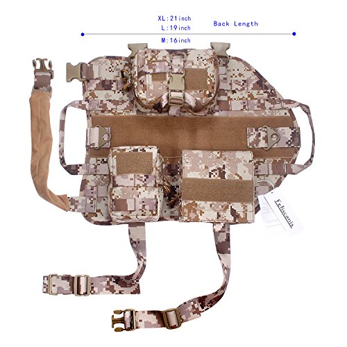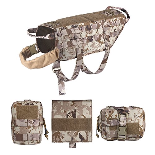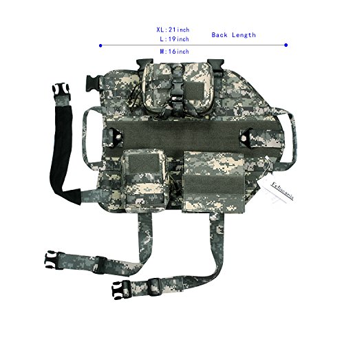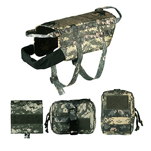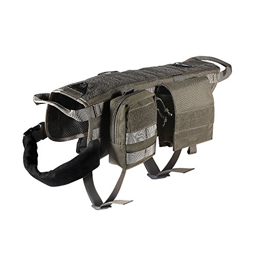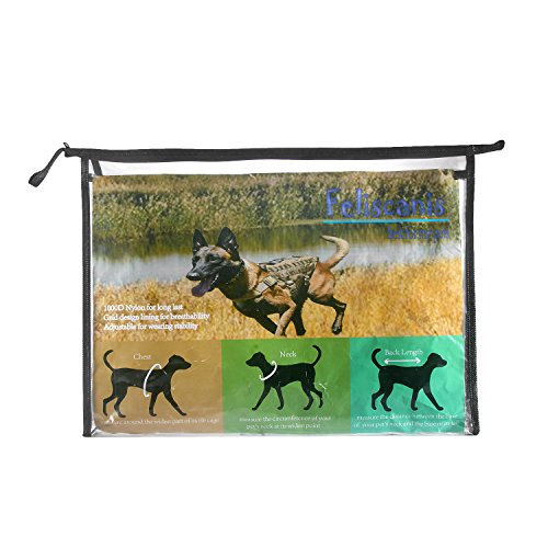 -. Brand : Feliscanis -. Feature : 1000D nylon outside avoids laceration,worn down and grid design lining for breathability,comfortable,Soft pad insert on the collar to prevent chafing on your dog's neck / Each strap can be adjustable for wearing stability and comfort / Both ends of the vest each has a carry handle and a metallic leash buckle / Comes with three different detachable pouches and Velcro panel down the back for any patch furniture -. Label : Feliscanis -. Manufacturer : Feliscanis -. ProductGroup : Sports -. ProductTypeName : OUTDOOR_RECREATION_PRODUCT -. Publisher : Feliscanis -. Studio : Feliscanis -. Title : Feliscanis Tactical Dog Vest Training Molle Harness with 3 Detachable Pouches