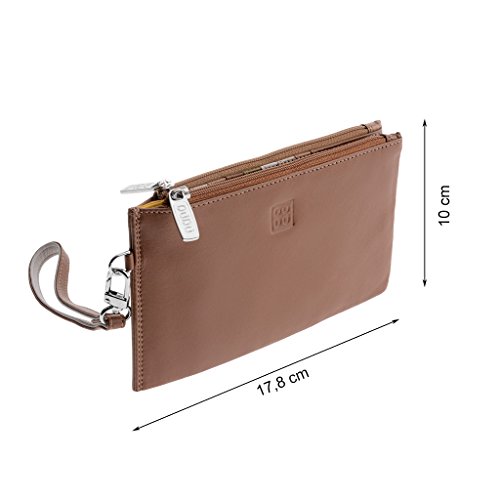 Brand:?DuDu® Material:?soft genuine calfskin leather Dimension (refer when wallet is close):?17,8 x 10 x 2,4 cm Weight:?100 g Box:?Included Type:?Ladies Composition:?18 credit cards pockets and 2 external zip pockets Available colours: Black, Safari, Dark brown, Red, Fuxia, Violet, Blue, Mauve, Woods. All multicolour