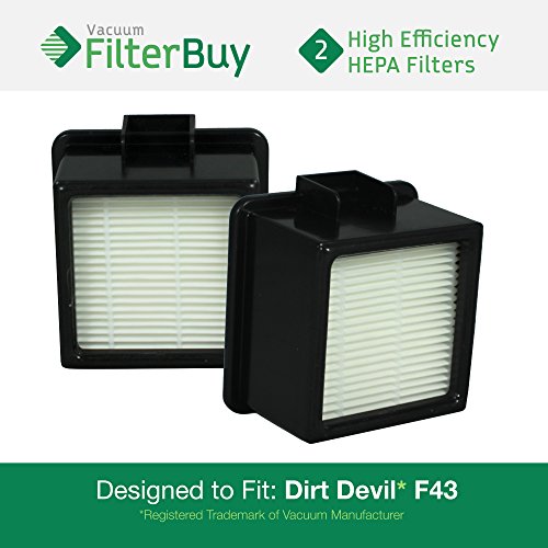 2 - Dirt Devil F-43 (F43) HEPA Replacement Filters, Part #'s 2PY1105000 & 1PY1106000. Designed by FilterBuy to fit Dirt Devil Easy Lite Cyclonic & Dirt Devil Extreme Quick Cyclonic Upright Vacuums